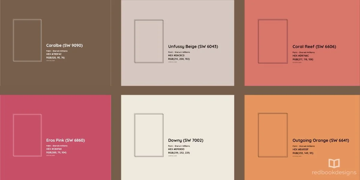 Bohemian Charm Meets Luxe: This palette effortlessly balances casual bohemian charm with high-end luxury. The warm browns create an inviting, lived-in feel, while the pops of pink and orange elevate the design, making it feel more like an artful composition. If you're looking for a space that feels both chic and cozy, this combination works magic.